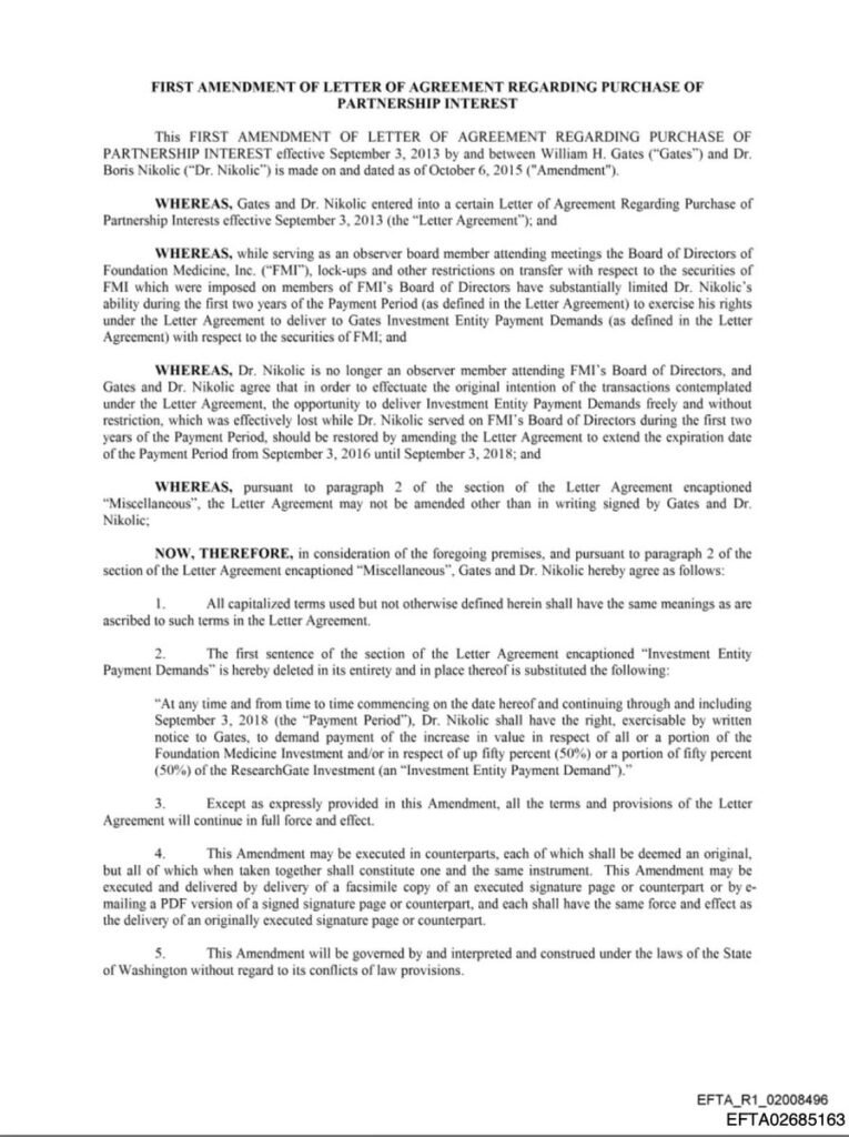 5. Gatesov izričit zahtjev za Epsteinom (2013.) Pismo iz 2013. (pet godina nakon Epsteinove osuđujuće presude) navodi da je Bill Gates „izričito zatražio“ da Epstein osobno bude predstavnik Borisa Nikolića. Gates potpisuje odricanje od sukoba interesa i široku indemnifikaciju. To znači da je, unatoč pristupu svim najelitnijim odvjetnicima i savjetnicima svijeta, izabrao osuđenog seksualnog prijestupnika – i to stavio na papir.