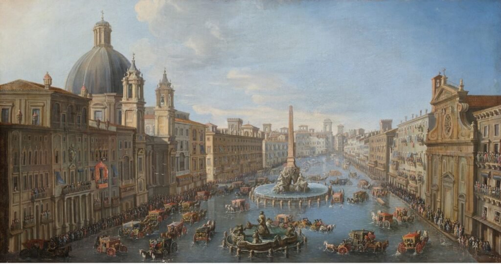 Da se nešto „veliko i ključno“ dogodilo u Rimu, ali i u čitavom tadašnjem svijetu u 18. stoljeću, govore slike Rima iz 18. stoljeća. Dok slike s početka 18. stoljeća prikazuju Rim u svoj njegovoj veličanstvenosti, slike s kraja 18. stoljeća prikazuju ga zaraslim u korov, u stanju zanemarenosti, slično poslijeratnom gradu.