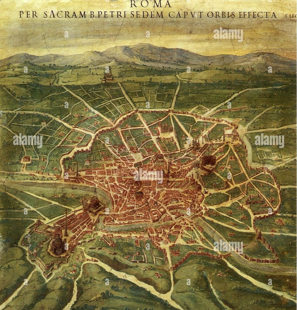 No, idemo dalje u povijest. Slijedeća slika je iz 1683. godine, odnosno od prije više od 340 godina i na njoj je vrlo lako uočljivo da je Rim već i tada imao velike kvadratne i pravokutne blokove zgrada, identične onima za koje kažu da su iz perioda 1870.-1920.