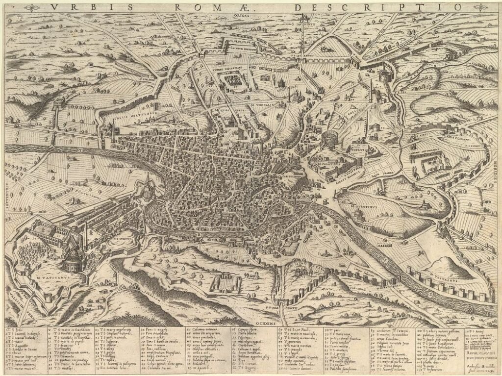 Isto potvrđuje, i to još eksplicitnije, mapa Rima iz 1590. godine… Nema nikakvih ruševina „antičkog Rima“!?